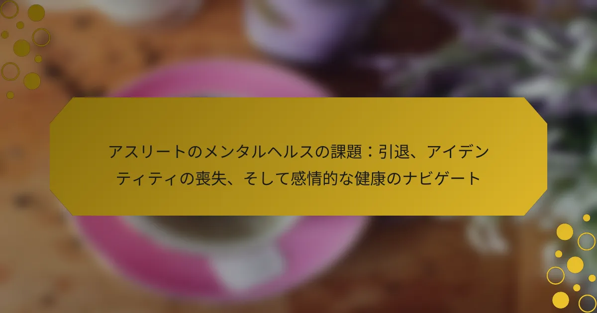 アスリートは引退中に、アイデンティティの喪失や感情的苦痛を含む重大なメンタルヘルスの課題に直面します。この記事では、民間生活への移行の影響、対処のための独自のメンタルヘルス戦略、そして脱人格化のような稀な問題について探ります。感情的な健康を維持するために、構造化された活動、社会的つながり、専門的なサポートの重要性を強調しています。 アスリートが引退中に直面するメンタルヘルスの課題は何ですか? アスリートは引退中に、アイデンティティの喪失、不安、うつ病を含む重大なメンタルヘルスの課題に直面します。構造化されたアスリートキャリアから民間生活への移行は、無目的感を引き起こすことがあります。多くのアスリートは、自分のスポーツ以外での自己価値を再定義するのに苦労し、これが感情的苦痛を悪化させることがあります。研究によると、引退したアスリートの最大45%がメンタルヘルスの問題を経験しており、サポートシステムと対処戦略の必要性が浮き彫りになっています。さらに、引退に対する準備不足は孤立感や喪失感を強める可能性があるため、アスリートがこの移行期間中に心理的サポートを求めることが不可欠です。 アイデンティティの喪失は引退したアスリートのメンタルウェルビーイングにどのように影響しますか? アイデンティティの喪失は引退したアスリートのメンタルウェルビーイングに大きな影響を与え、不安やうつ病を引き起こすことがよくあります。アスリートが競技から引退する際、自己価値を再定義するのに苦労することがあり、これが孤立感を悪化させることがあります。研究によると、約45%の引退したアスリートがアイデンティティの喪失に関連するメンタルヘルスの問題を経験しています。この独自の特性は、引退中のサポートシステムの重要性を強調しています。新しい活動に参加し、社会的つながりを育むことは、これらの課題を軽減し、より健康的な感情状態を促進します。 引退したアスリートのアイデンティティ移行の段階は何ですか? 引退したアスリートは、否認、探求、受容、統合の4つの段階でアイデンティティ移行を経験することがよくあります。否認の段階では、アスリートはスポーツなしの新しい現実を受け入れるのに苦労します。探求の段階では、アスリートはアスリート以外の新しいアイデンティティや興味を求めます。受容の段階では、彼らは過去と現在の自己を認めます。最後に、統合の段階では、アスリートは自分のアスリートアイデンティティを新しい役割と融合させ、感情的なウェルビーイングを高めます。 引退するアスリートに共通する感情的な苦悩は何ですか? 引退するアスリートは、アイデンティティの喪失、不安、うつ病などの感情的な苦悩に直面することがよくあります。これらの課題は、構造化されたアスリートキャリアから不確実な未来への急激な移行から生じます。アイデンティティの喪失は特に重要で、アスリートはしばしば自分自身をスポーツによって定義します。その結果、無価値感や混乱感が生じることがあります。さらに、スポーツ後の生活に対する不安は、うつ病を引き起こし、メンタルヘルスの問題を悪化させる可能性があります。サポートシステムやカウンセリングは、これらの感情的な課題を軽減するのに役立ちます。 アスリートはどのようにうつ病や不安の兆候を特定できますか? アスリートは、気分、行動、身体的健康の変化を認識することで、うつ病や不安の兆候を特定できます。一般的な指標には、持続的な悲しみ、チームメイトからの引きこもり、睡眠パターンの変化、パフォーマンスの低下が含まれます。これらの症状を注意深く監視することで、早期の介入とサポートが促進されます。 社会的サポートはアスリートの引退後のメンタルヘルスにどのような役割を果たしますか? 社会的サポートは、アスリートの引退後のメンタルヘルスを大いに向上させ、感情的な安定と帰属意識を提供します。アスリートキャリアからの移行は、アイデンティティの喪失を引き起こすことが多く、社会的つながりは対処において重要です。研究によると、強力なサポートネットワークは孤立感やうつ病を軽減し、レジリエンスを育むことができます。家族、友人、元チームメイトとの関わりは、アスリートがこの困難な段階を乗り越えるのを助け、全体的な感情的ウェルビーイングを促進します。 引退したアスリートに最も有益なサポートネットワークはどれですか? ピアグループ、メンタルヘルスの専門家、地域団体などのサポートネットワークは、引退したアスリートにとって最も有益です。これらのネットワークは、感情的なサポート、アイデンティティ移行のためのリソース、メンタルヘルスの課題に対する対処戦略を提供します。ピアグループは共通の経験を育み、メンタルヘルスの専門家は個別の指導を提供します。地域団体は、スポーツを超えた関与と