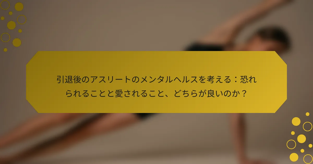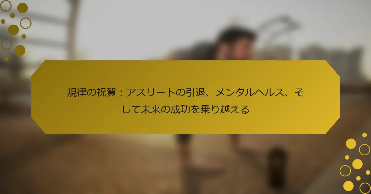 アスリートキャリア後の生活をナビゲートすることは、特にメンタルヘルスとアイデンティティに関して重大な課題を伴います。アスリートは、アイデンティティの喪失や自己価値の低下により、不安や抑うつを経験することがよくあります。サポートシステムや財務計画の重要性を理解することは、成功する移行にとって重要です。個人の成長を強調し、新しい情熱を探求することは、スポーツ後の充実した生活につながる可能性があります。 アスリートキャリアからの移行はメンタルヘルスにどのように影響しますか? アスリートキャリアからの移行はメンタルヘルスに大きな影響を与え、不安や抑うつを引き起こすことがよくあります。アスリートは、引退後にアイデンティティの喪失や自己価値の低下に直面します。この移行の独特な特徴は、スポーツを超えた個人のアイデンティティを再定義することに苦労することです。研究によると、引退したアスリートの40%がメンタルヘルスの問題を経験しており、サポートシステムの必要性が強調されています。その結果、つながりを育み、新しい情熱を探求することが、将来の成功と幸福にとって重要です。 引退したアスリートが直面する一般的なメンタルヘルスの課題は何ですか? 引退したアスリートは、抑うつ、不安、アイデンティティ危機などのメンタルヘルスの課題に直面することがよくあります。これらの問題は、競技スポーツからの急激な移行から生じ、喪失感や目的の欠如につながります。研究によると、引退したアスリートの35%が重大なメンタルヘルスの懸念を抱えており、サポートシステムの必要性が強調されています。これらの課題に対処することは、レジリエンスを育み、アスリートのスポーツ後の生活における将来の成功にとって重要です。 アスリートは引退の心理的側面にどのように備えることができますか? アスリートは、強力なメンタルフレームワークとサポートシステムを構築することで引退に備えることができます。自己反省に従事することで、スポーツを超えた個人の価値観や興味を特定するのに役立ちます。メンタルヘルスの専門家とのつながりを確立することで、重要な指導を受けることができます。さらに、ライフスキルやキャリア移行に焦点を当てたワークショップに参加することで、レジリエンスや適応力を育むことができます。コミュニティやソーシャルネットワークの重要性を強調することで、この重要なライフチェンジの間に感情的な幸福を高めることができます。 移行中にメンタルウェルビーイングをサポートするための対処戦略は何ですか? 移行中にメンタルウェルビーイングをサポートするために、アスリートはさまざまな対処戦略を採用できます。これには、強力なサポートネットワークを確立すること、マインドフルネス技術を実践すること、現実的な目標を設定することが含まれます。身体活動に従事することも、気分を高め、ストレスを軽減するのに役立ちます。さらに、必要に応じて専門的な助けを求めることで、個々の課題に対する特化した戦略を提供できます。 キャリア後のメンタルヘルスにおいて社会的サポートはどのような役割を果たしますか? 社会的サポートは、キャリア後に移行するアスリートのメンタルヘルスを大いに向上させます。これは感情的な安定を提供し、孤立感を減少させ、帰属意識を育みます。研究によると、強力な社会的ネットワークは、この脆弱な時期における対処戦略やレジリエンスの向上につながる可能性があります。家族、友人、仲間と関わることで、アスリートはアイデンティティの変化を乗り越え、メンタルウェルビーイングを維持するのに役立ちます。 アスリートのキャリア後の計画に影響を与える普遍的な要因は何ですか? アスリートのキャリア後の計画は、メンタルヘルス、アイデンティティの移行、財務の安定性、サポートシステムによって影響を受けます。アスリートは引退後に自己価値に苦しむことが多く、これがメンタルヘルスに影響を与えます。財務計画は重要であり、多くのアスリートがキャリア後に経済的な課題に直面します。さらに、強力なサポートシステムは、スムーズな移行を促進するのに役立ちます。これらの要因を理解することで、より成功したキャリア後の結果につながる可能性があります。 引退後、アイデンティティと自己価値はどのように変化しますか? 引退はアスリートのアイデンティティと自己価値を大きく変える可能性があります。多くのアスリートは目的の喪失を経験し、メンタルヘルスの課題に苦しむことがあります。競技スポーツからの移行は、アスリートがスポーツの外で自分自身を再定義しなければならないため、アイデンティティの再評価につながることがよくあります。この変化は、ポジティブにアプローチすることでレジリエンスや個人の成長を促進する可能性があり、新しい情熱や人間関係を強調するこ