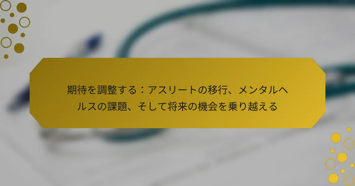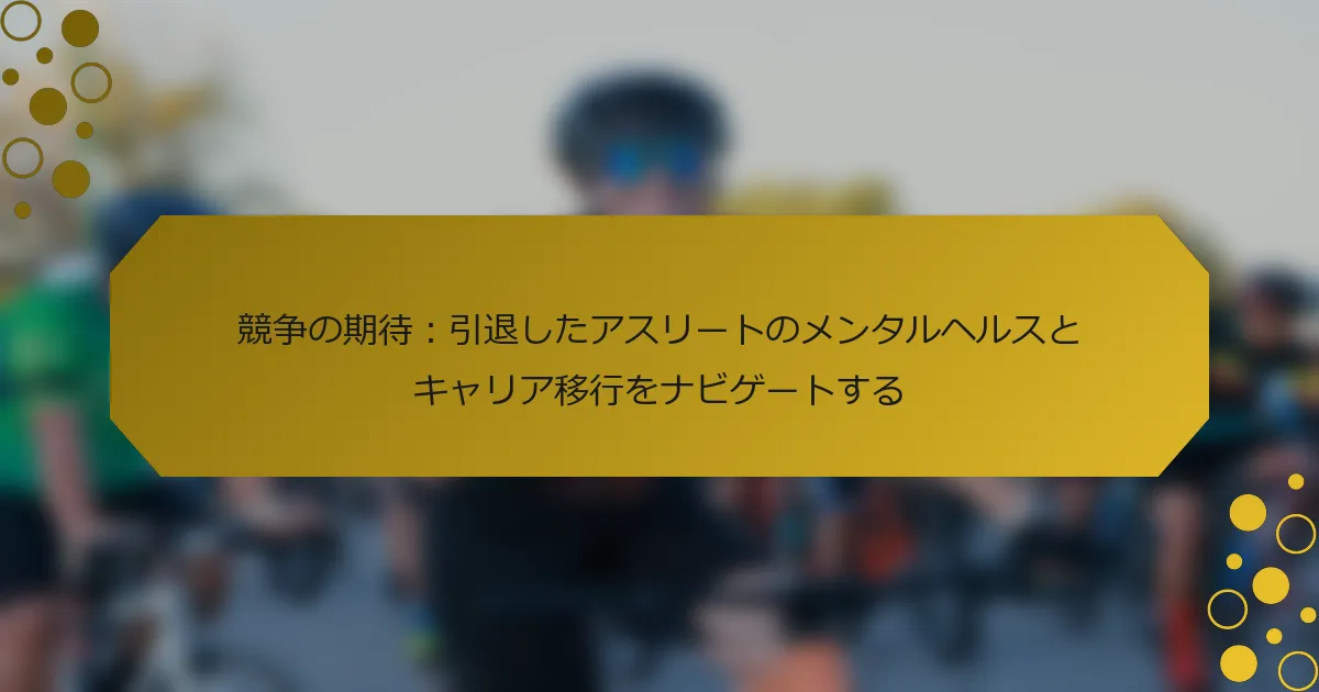 競技スポーツからの移行を行うアスリートは、不安やアイデンティティの問題を含む重大なメンタルヘルスの課題に直面します。この記事では、効果的なキャリア後の計画、現実的な目標設定の重要性、そしてコミュニティサポートの価値について探ります。また、この脆弱な段階で発生する可能性のある稀なメンタルヘルスの問題にも触れながら、個人の成長やキャリアの再発明のためのユニークな機会を強調します。 アスリートは移行中にどのようにメンタルヘルスの課題を経験するのか? アスリートは、アイデンティティの変化やプレッシャーにより、移行中に重大なメンタルヘルスの課題に直面することがよくあります。これらの課題には、将来の機会に対する不安、喪失感、自己価値感の葛藤が含まれます。研究によると、引退したアスリートの最大35%がメンタルヘルスの問題を経験しており、この脆弱な期間におけるサポートの必要性が浮き彫りになっています。構造化されたアスリート環境から、より定義されていない未来への移行は、孤立感や不確実性を悪化させる可能性があります。その結果、メンタルヘルスリソースやコミュニティサポートが、この複雑な段階を乗り越えるために不可欠となります。 引退するアスリートが直面する一般的な感情的反応は何か? 引退するアスリートは、喪失感、不安、アイデンティティ危機を一般的に経験します。これらの感情的反応は、構造化されたアスリートキャリアからの急激な移行に起因しています。多くのアスリートは、スポーツ以外での自己価値を再定義することに苦労し、ストレスやうつ病を引き起こすことがあります。そのため、この期間中のメンタルヘルスサポートは非常に重要です。 引退後のアスリートにとってアイデンティティの喪失が重要な理由は何か? 引退後のアスリートにとってアイデンティティの喪失は、構造化された公の生活から個人的な匿名性への急激な移行により重要です。この変化は、アスリートがスポーツ以外での自己価値を再定義するのに苦労するため、不安やうつ病などのメンタルヘルスの課題を引き起こす可能性があります。研究によると、引退したアスリートの約40%がアイデンティティ危機を経験しており、これが彼らの感情的な幸福感や人間関係に影響を及ぼしています。将来の機会は、適応能力に依存することが多く、この移行期間中のサポートシステムの必要性が強調されます。 アスリートキャリアの終わりから生じる心理的影響は何か? アスリートキャリアの終わりは、アイデンティティの喪失、不安、うつ病などの重大な心理的影響を引き起こす可能性があります。アスリートは、確立された役割からの移行に苦労することが多く、これが自己評価やメンタルヘルスに影響を与えることがあります。研究によると、引退したアスリートの35%がうつ病を経験しており、この移行期間中のメンタルヘルスサポートの必要性が浮き彫りになっています。さらに、チーム環境からのルーチンや社会的つながりの喪失は、孤立感を悪化させる可能性があります。コーチングやメンターシップにおける将来の機会は、これらの課題を軽減するためのポジティブな出口を提供することができます。 効果的なキャリア後の計画における普遍的な戦略は何か? アスリートにとっての効果的なキャリア後の計画は、期待の管理、メンタルヘルスへの対処、新しい機会の探求を含みます。アスリートは、スポーツからの移行がアイデンティティの課題や感情的な苦労につながる可能性があることを認識すべきです。 現実的な目標を設定することが重要です。アスリートは、新しいキャリアでの成功には時間と努力が必要であることを理解する必要があります。メンタルヘルスの専門家からのサポートを求めることで、貴重な対処戦略を得ることができます。ネットワーキングに参加することで、コーチング、スポーツマネジメント、または起業など、さまざまなキャリアパスへの扉を開くことができます。 さらに、アスリートは、規律やチームワークなどの独自のスキルを活用して、雇用可能性を高めるべきです。継続的な学習とスキル開発は、アスリートの生活へのスムーズな移行をさらに促進することができます。 アスリートはスポーツ以外で新しいアイデンティティをどのように構築できるか? アスリートは、新しい興味やスキルを受け入れることで、スポーツ以外で新しいアイデンティティを構築できます。この移行は、期待を調整し、メンタルヘルスの課題に対処することを含むことがよくあります。教育的な追求やコミュニティへの関与は、将来の機会を生み出すことができます。カウンセリングなどのサポートシステムは、アイデンティティ再構築のためのツールを提供することで、このプロセスを強化します。 メンタルヘルスサポートのためのリソースは何か? アスリートの移行におけるメンタルヘルスサポートには、さまざまな