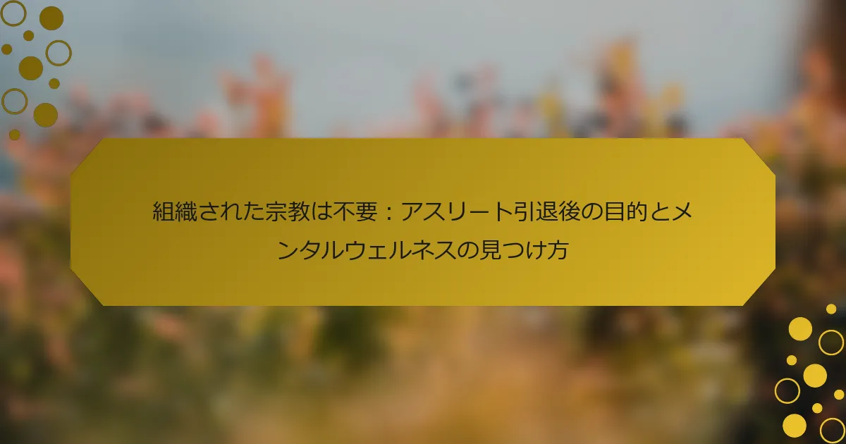 組織された宗教は不要:アスリート引退後の目的とメンタルウェルネスの見つけ方