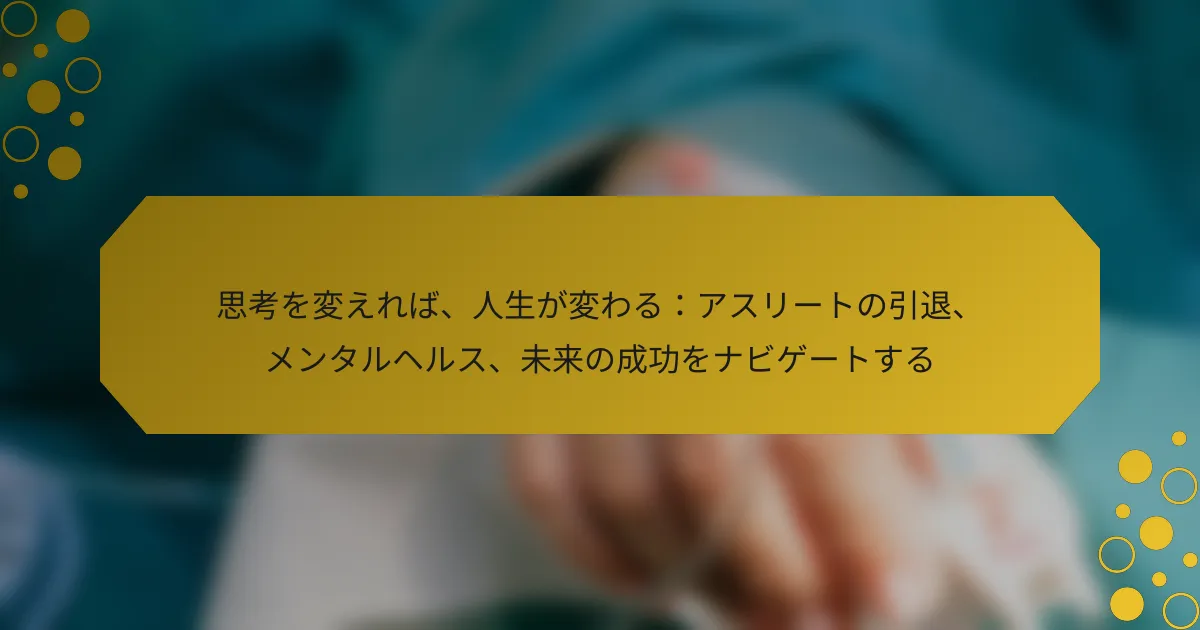 スポーツ引退後の生活をナビゲートすることは、アスリートにとって挑戦的であり、彼らのメンタルヘルスや将来の成功に影響を与える可能性があります。この記事では、積極的なマインドセットの開発、メンタルヘルスの重要性、キャリアプランニングの戦略について探ります。また、引退したアスリートがどのように独自のスキルを活用し、サポートネットワークを構築できるかも強調します。新しい目標を受け入れ、マインドフルネスの実践を行うことで、この重要なライフトランジションの間にレジリエンスを育むことができます。 アスリートはスポーツ引退後の生活にどのように備えることができますか? アスリートは、積極的なマインドセットを開発し、新しい機会を探ることでスポーツ引退後の生活に備えることができます。メンタルヘルスはこの移行において重要な役割を果たし、多くのアスリートが引退後にアイデンティティの課題に直面します。キャリアプランニング、ネットワーキング、サポートを求めることは、将来の成功を促進します。スポーツ以外のスキルを構築することは、レジリエンスと適応力を高め、この重要なライフチェンジをナビゲートするために不可欠です。 移行中に直面する一般的な課題は何ですか? アスリートキャリアからの移行は、アイデンティティの喪失、感情的苦痛、将来への不確実性など、いくつかの一般的な課題を伴います。アスリートは、スポーツ以外での自己価値を再定義することに苦労することがよくあります。このアイデンティティ危機は、不安や抑うつを引き起こす可能性があり、これは引退アスリートにおいて一般的なメンタルヘルスの問題です。さらに、構造化された環境やルーチンの欠如は、無目的感を悪化させる可能性があります。スポーツ引退後の新しいスキルを開発し、人生の目的を見つけることは、この移行を成功裏にナビゲートするために重要です。 引退後のアイデンティティはどのように変化しますか? 引退後、役割や自己認識の変化により、アイデンティティは大きく変化することがよくあります。アスリートは、競争的な環境から移行する際に、目的意識や自己価値感に苦しむことがあります。この変化は、不安や抑うつなどのメンタルヘルスの課題を引き起こす可能性があります。研究によると、社会的なつながりを維持し、新しい情熱を見つけることがこれらの影響を軽減することができます。新しいアイデンティティを受け入れ、将来の成功に焦点を当てることは、ポジティブな移行にとって重要です。 このアイデンティティの変化に伴う心理的影響は何ですか? アスリートからの引退は、アイデンティティの喪失、不安、抑うつなど、重要な心理的影響をもたらす可能性があります。アスリートは、スポーツ以外での自己価値を再定義することに苦労することが多く、孤立感を悪化させる可能性があります。研究によると、引退アスリートの約60%がこの移行に関連するメンタルヘルスの課題を経験しています。新しい情熱やサポートシステムを開発することで、これらの影響を軽減し、レジリエンスと将来の成功を育むことができます。 引退後のキャリアプランニングのための効果的な戦略は何ですか? 引退後のキャリアプランニングのための効果的な戦略には、明確な目標を設定し、専門的な指導を求め、サポートネットワークを構築することが含まれます。アスリートは、スポーツ以外でのスキルや興味を評価する必要があります。メンタルヘルスの実践に従事することは、スムーズな移行にとって重要です。財務計画を立てることで、長期的な安定を確保します。新しいキャリアの機会を探ることは、充実した未来につながる可能性があります。 目標設定はこの移行にどのように役立ちますか? 目標設定は、引退に移行するアスリートにとって重要であり、方向性と目的を提供します。明確で達成可能な目標を設定することで、元アスリートは新しいアイデンティティをナビゲートし、メンタルヘルスを維持できます。研究によると、目標設定はモチベーションと集中力を高め、個人がスポーツ引退後の生活に適応するのを助けます。さらに、短期および長期の目標を設定することで、達成感を育むことができ、これはこの重要なライフチェンジの間の全体的な幸福にとって重要です。 教育は新しいキャリアの準備にどのように役立ちますか? 教育は、新しいキャリアの準備において重要な役割を果たし、個人に必要なスキルと知識を提供します。教育は適応力を育み、批判的思考を高め、プロフェッショナルネットワークを構築します。これらの要素は、特に引退を迎えるアスリートにとって、成功した移行に不可欠です。研究によると、キャリアを変える70%の人々が教育をその旅の重要な要因として評価しています。さらに、メンターシッププログラムや専門的なトレーニングなどのユニークな属性は、新しい分野に入る人々の成