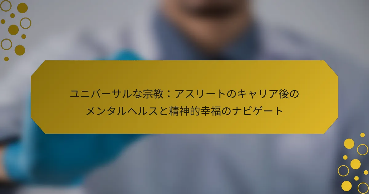 普遍的な宗教は、引退後のアスリートのメンタルヘルスを向上させる重要な役割を果たすことができます。これは、支援的なコミュニティ、目的意識、アイデンティティ危機の際の対処メカニズムを提供します。瞑想や祈りなどの精神的な実践に従事することで、不安を軽減し、レジリエンスを育むことができます。さらに、強力なサポートネットワークを構築し、個人的な成長の機会を探求することは、キャリア後の移行を乗り越えるために不可欠です。 普遍的な宗教はアスリートのキャリア後のメンタルヘルスにどのように影響しますか? 普遍的な宗教は、支援的なコミュニティと目的意識を提供することで、アスリートのキャリア後のメンタルヘルスを大幅に向上させることができます。多くのアスリートは引退後にアイデンティティ危機を経験し、これがメンタルヘルスの課題につながります。包括性と共通の信念を強調する普遍的な宗教に関与することで、孤立感を軽減するのに役立ちます。 研究によれば、これらの宗教に関連する精神的な実践、例えば瞑想や祈りは、不安や抑うつを軽減することができます。さらに、宗教コミュニティへの参加は社会的なつながりを促進し、移行中の感情的なサポートを提供します。アスリートは、これらの精神的な関与を通じてメンタルウェルビーイングとレジリエンスが向上したと報告することがよくあります。 さらに、普遍的な宗教は、過去の grievances に対処し、個人的な成長を促進するための思いやりと許しの価値を推進します。この普遍的な宗教の独自の特性は、感情の調整を改善し、より健康的な心の状態を育むことにつながり、最終的にはアスリートのスポーツキャリア後の全体的な生活の質を向上させます。 引退するアスリートが直面する一般的なメンタルヘルスの課題は何ですか? 引退するアスリートは、一般的に不安、抑うつ、アイデンティティの喪失といったメンタルヘルスの課題に直面します。これらの問題は、構造化されたアスリートキャリアから市民生活への急激な移行から生じます。 不安は、未来や経済的安定についての不確実性から生じることが多いです。抑うつは、引退後の孤立感や目的喪失から生じることがあります。アイデンティティの喪失は、アスリートがスポーツ以外の自分を再定義するのに苦労する際に発生します。 精神的な健康は、これらの課題を乗り越える上で重要な役割を果たすことができます。精神的な実践に従事することで、アスリートはコミュニティと目的意識を得て、キャリア後の生活に適応するのを助けることができます。 サポートシステム、セラピーやピアグループを含む、はこれらのメンタルヘルスの課題に対処する上で不可欠です。これらは、共有された経験に関する議論を促進し、この移行における癒しとレジリエンスを促進します。 精神性はアスリートの移行をどのようにサポートできますか? 精神性は、アスリートの移行をサポートする上で、感情的なレジリエンスと目的意識を提供することで大きな役割を果たします。精神的な実践に従事することで、アスリートはキャリア後のアイデンティティの変化に対処するためのマインドフルネスを育むことができます。さらに、精神性はコミュニティのつながりを促進し、メンタルウェルビーイングを向上させるサポートネットワークを提供します。研究によると、精神性を受け入れるアスリートは、移行中に不安が低く、生活満足度が高いと報告しています。これらの利点は、キャリア後の課題を乗り越えるためのツールとしての精神性の独自の特性を強調しています。 コミュニティはアスリートのキャリア後の旅においてどのような役割を果たしますか? コミュニティは、アスリートのキャリア後の旅において、サポート、つながり、帰属意識を提供する重要な役割を果たします。コミュニティグループに関与することで、メンタルヘルスと精神的な健康を向上させ、引退後のアイデンティティの変化を乗り越えるのを助けることができます。研究によると、社会的サポートネットワークは、元アスリートの孤立感や抑うつ感を大幅に軽減します。コミュニティへの参加は新しい関係を育み、個人的な成長を促進し、スポーツを超えた目的意識を促進します。この移行は、キャリア後の生活における全体的なウェルビーイングとレジリエンスを維持するために重要です。 宗教的な実践はどのように感情的な安定を提供できますか? 宗教的な実践は、コミュニティのサポートを育み、ルーチンを促進し、対処メカニズムを強化することで感情的な安定を提供できます。儀式や共有された信念に従事することで、アスリートはキャリア後に帰属意識と目的意識を得ることができます。例えば、祈りや瞑想は不安を軽減し、メンタルヘルスを改善することができます。研究によると、精神性は移行に直面している個人のレジリエンスと感情的な健康に関連しています。 