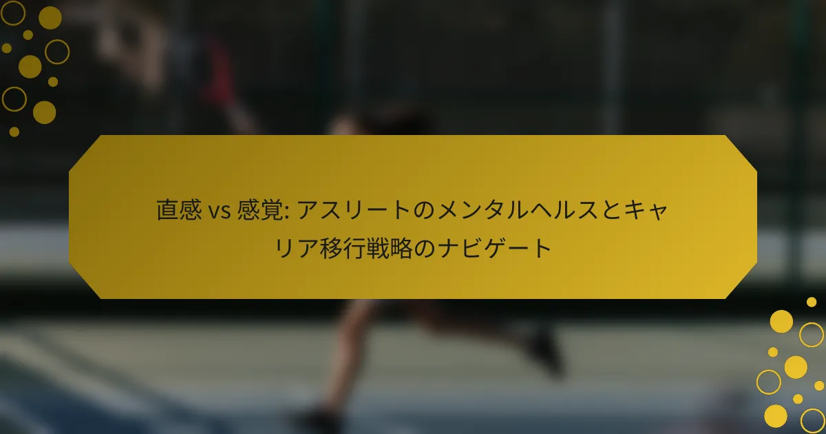 直感と感覚のバランスを理解することは、キャリアの移行中にメンタルヘルスの課題に直面しているアスリートにとって不可欠です。この記事では、これらの認知スタイルが意思決定や感情的反応にどのように影響するか、効果的な引退後の計画戦略、メンタルレジリエンスと社会的支援の重要性について探ります。また、この重要なライフチェンジを乗り越えるための感情的知性と自己認識の役割も強調しています。これらの要素を優先することで、アスリートの幸福と引退後の成功を大いに高めることができます。 直感と感覚はアスリートのメンタルヘルスにどのように影響するか? 直感と感覚は、意思決定や感情的反応を形成することによってアスリートのメンタルヘルスに大きな影響を与えます。直感はアスリートが自分の本能を信じることを可能にし、競技中の自信を育みます。一方、感覚は身体的感覚や即時の環境への意識を強調し、集中力を高めることができますが、パフォーマンス指標にこだわると不安を引き起こす可能性もあります。キャリアの移行中には、これらの認知スタイルのバランスを取ることが重要です。アスリートはアイデンティティの変化やメンタルヘルスの課題に直面しています。これらの要素がどのように相互作用するかを理解することで、最適なメンタルウェルビーイングのための支援戦略を考案できます。 直感と感覚の主な違いは何ですか? 直感と感覚は、情報をどのように認識し解釈するかにおいて異なります。直感的な人はパターンや可能性に焦点を当てるのに対し、感覚的な人は具体的な事実や詳細を優先します。 直感は未来志向の思考や抽象的な概念を強調し、アスリートがキャリアの移行中に潜在的な結果を想像するのを助けます。感覚は実践的な意思決定を支援し、アスリートが現在の状況を正確に評価するのを助けます。 この区別はメンタルヘルス戦略にとって重要です。適切なアプローチはアスリートの対処メカニズムを強化できます。これらの違いを理解することで、キャリアの移行を乗り越えるためのより効果的なコミュニケーションと支援が可能になります。 これらの認知スタイルは感情的な幸福にどのように影響しますか? 認知スタイルは、アスリートのキャリアの移行中に感情的な幸福に大きな影響を与えます。直感的なアスリートは適応力が高まり、レジリエンスを育むことがあります。一方、感覚的なアスリートは構造化されたルーチンに依存することが多く、不確実性に直面するとストレスを引き起こす可能性があります。これらのスタイルを理解することで、メンタルヘルス戦略を効果的に調整できます。 自己認識はこれらのスタイルを理解する上でどのような役割を果たしますか? 自己認識は、アスリートが自分の直感と感覚のスタイルを理解する上で重要です。自己認識は、個人の強みや弱みを認識する能力を高め、効果的なメンタルヘルス戦略を導くのに役立ちます。この理解は、キャリアの移行中により良い意思決定を促進し、アスリートが自分の選択をコアバリューや本能に合わせることを可能にします。自己認識を育むことで、アスリートはメンタルヘルスやキャリアパスの複雑さをより効果的に乗り越えることができます。 キャリアを移行するアスリートが直面する一般的なメンタルヘルスの課題は何ですか? キャリアを移行するアスリートは、しばしば不安、抑うつ、アイデンティティの危機などのメンタルヘルスの課題に直面します。これらの問題は、パフォーマンスのプレッシャー、構造化されたルーチンの喪失、スポーツ以外での自己価値の再定義の苦労から生じます。移行中のアスリートは、社会的支援が大幅に減少し、将来に対する不確実性に直面することが多く、孤立感を感じることがあります。対処戦略を開発し、専門的なサポートを求めることは、これらの課題を効果的に管理するために重要です。 効果的な引退後の計画の普遍的な属性は何ですか? アスリートの効果的な引退後の計画には、自己評価、目標設定、支援システム、メンタルヘルス戦略が含まれます。これらの属性は、スムーズな移行と長期的な幸福を確保します。自己評価は強みや興味を特定するのに役立ち、目標設定は方向性を提供します。メンターや仲間を含む支援システムは、指導と励ましを提供します。最後に、メンタルヘルスに焦点を当てることは、引退の感情的な課題に対処するために重要です。 アスリートはキャリアの移行中に直感をどのように活用できますか? アスリートはキャリアの移行中に自分の直感や経験を信じることで直感を活用できます。このアプローチにより、彼らは不確実性を乗り越え、情報に基づいた意思決定を行うことができます。直感は、アスリートが自分の価値観や情熱に合った新しい機会を特定するのを導くことができます。反省的な実践に参加することで直感的な洞察が高まり、アスリートは自分の強みや興味を